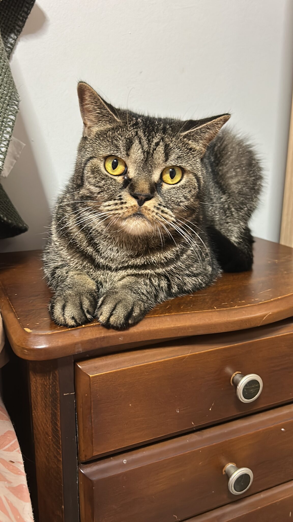 Bir dükkanda bakılıyorken 2 kere doğurtulup bebeklerini almışlar sonra tamamen sokağa terkedilmiş . Korumaya alıp kısırlaştırdım pire alerjisi mahvetmişti şimdi çok güzel bakımlı sağlık sorunu yok , ikinci kedi içinde uyumlu