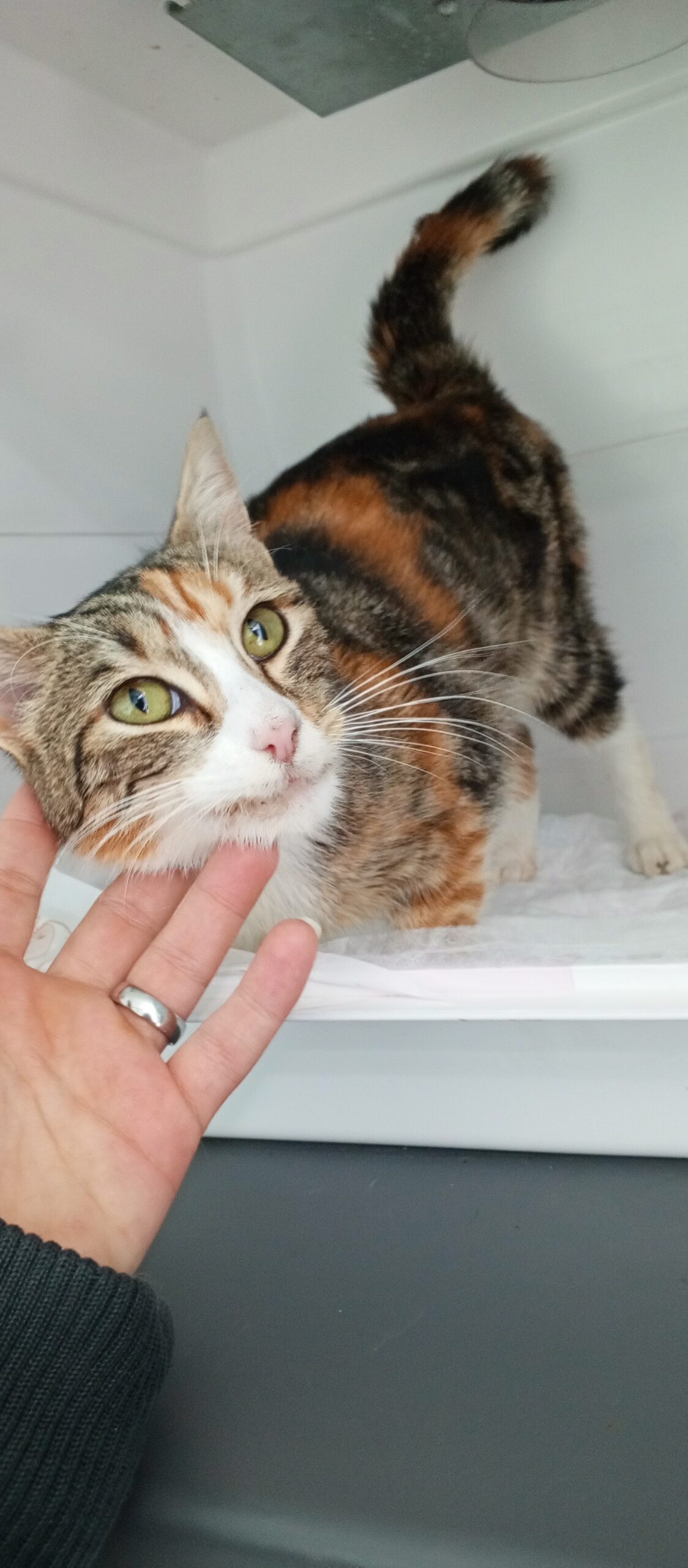 2 yaşlarında calico dişi. Şuan klinikte tedavi görüyor hemde kısırlaştırması yapılacak. Sakin ve kendisini sevdirmeyi seven bir kız çocuğu. Klinikten sağlıklı bir şekilde çıkacak ve tekrar sokağa gitsin istemiyorum. Takip şartı ile onu ömür boyu sevecek terketmeyecek ailesini arıyorum.