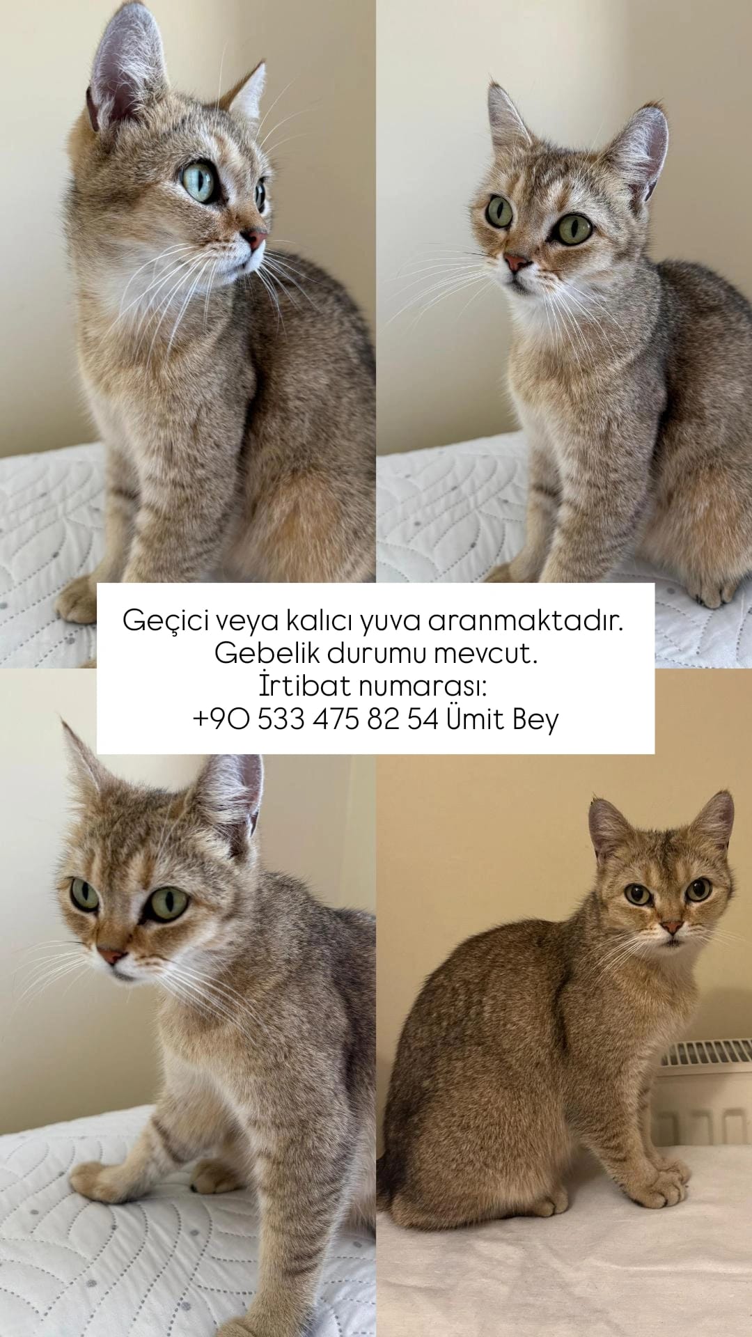 Kedin yaklaşık 40 günlük hamile. Dışarıya bırakılmış. Cins kedi olduğu için sahiplendirmek amaçlı evime aldım. Kendi kedimden dolayı bir oda bakabiliyorum. Sanırım kedi 9-12 aylık Kilosu 3 Cinsi: BRITISH GOLDEN SHORTHAIR Hamile ve 4 yavru bekleniyor.